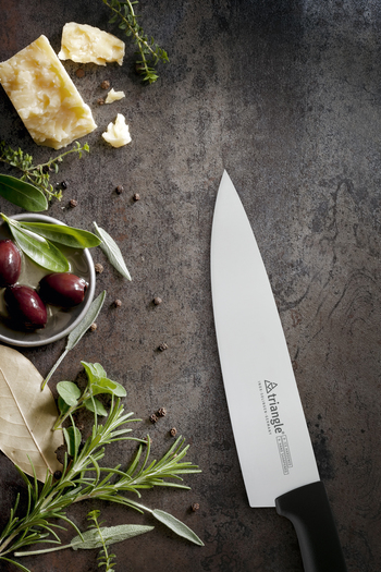 With its unique blade the triangle Kitchen Knife wavy edge is specialized in delicate and pressure-sensitive tasks. Tomatoes, fillings, toppings and cooked foods are easily cut without crushing.